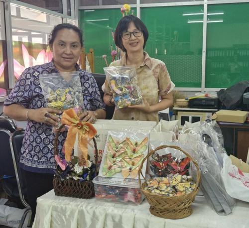 💠 สิบตำรวจโทหญิงอุไรวรรณ อุทัยนาง พัฒนาการอำเภอเมืองปทุมธานี รับมอบผีเสื้อจากนางวราลักษณ์ ควรพินิจ ประธานคณะกรรมการเครือข่าย OTOP อำเภอเมืองปทุมธานี, นางสุภาพร น้อยเสงี่ยม, นางสาวธันยนันท์ ปิติวัฒนโรจน์, นางพัชรี ดิศรานนท์, นางสาวทศวัน วิรชา, นายพัลลภ สาโค, นางสาวปริศนา แสนเสมอ และบุตรชาย, นางสาวปัณชลิกา รุ่งเรือง, นางสาวกัญญาพัชญ์ ลึกอะหร่ำ, นางสาวพรสวรรค์ รอดคล้าย, นางสุชานันท์ ป้าตุ๊ก มะพร้าวถอดเสื้อ ผู้ผลิต ผู้ประกอบการ OTOP อำเภอเมืองปทุมธานี มอบผีเสื้อ จำนวน 165 ตัว เพื่อใช้ในกิจกรรมจับผีเสื้อเสี่ยงโชค งานกาชาด ประจำปี พ.ศ 2568 ณ สวนลุมพินี กรุงเทพมหานคร